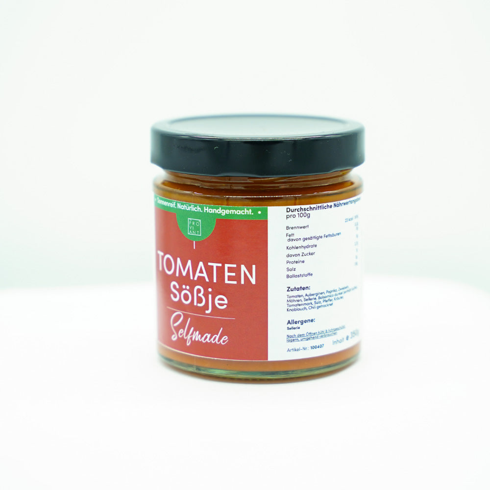 Handgemacht in unserer Proviantmanufaktur und sorgfältig ins Glas gebracht, ist das Tomatensößje der perfekte Begleiter für eine schnelle Pasta, als Basis für Pizza, Aufläufe oder zum Veredeln verschiedenster Gerichte. Haltbar für das ganze Jahr – als echter Proviant im Glas für bewussten Genuss ohne Kompromisse.